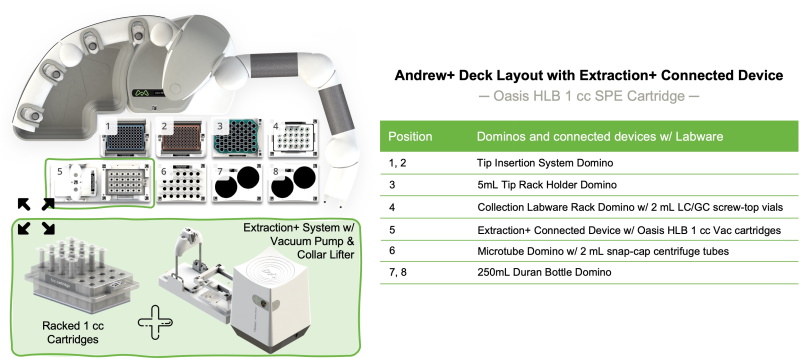 Fully Automated Solid Phase Extraction Sample Preparation using the Andrew+ Pipetting Robot configured with the Extraction+ Connected Device