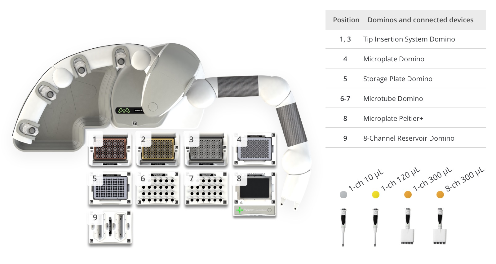 Andrew+ System Components: Dominos, Devices, Electronic Pipettes & Tips
