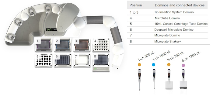 Andrew+ System Components: Dominos, Devices, Electronic Pipettes & Tips