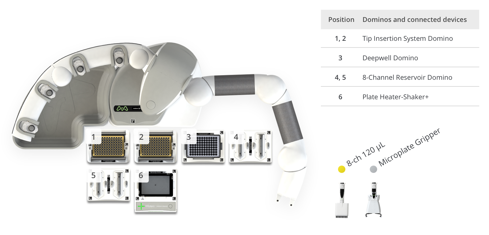 Andrew+ System Components: Dominos, Devices, Electronic Pipettes & Tips