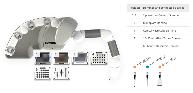 Andrew+ System Components: Dominos, Devices, Electronic Pipettes & Tips